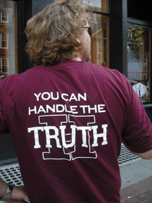 Already a few younguns from New York hit up RT for materials, though they were skeptical because in their words "I was there!" And of course they were like 10 years old, but that's beside the point--they were willing to take info cards and wil soon find themselves learning more than they bargained for at Harvard. After 6 weeks of seeing RT every day they will go home transofrmed, or at least aware that yes, there are people everywhere who believe these "kooky conspiracy theories"!